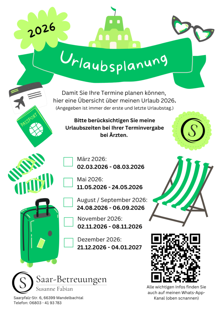 - Weihnachtsurlaub vom 22.12.2025 bis einschließlich 04.01.2026